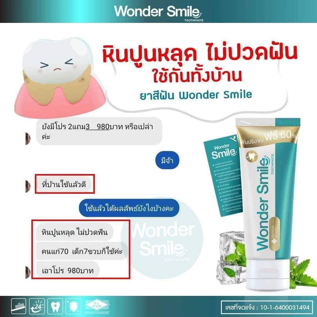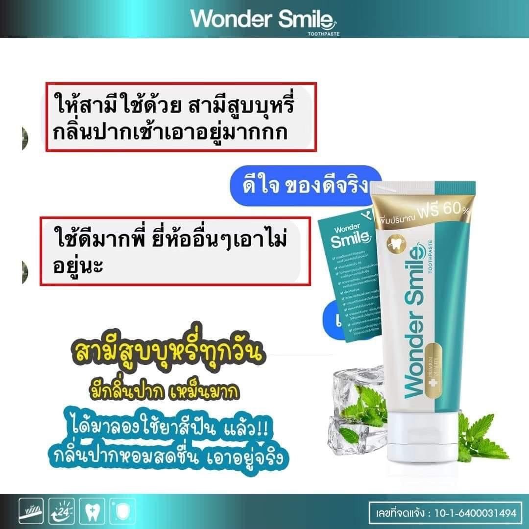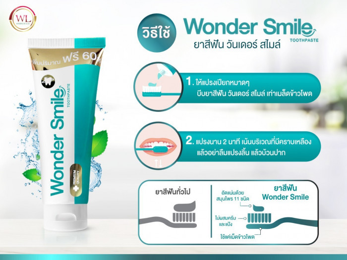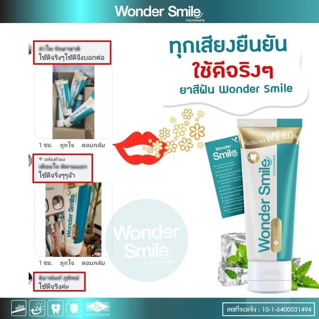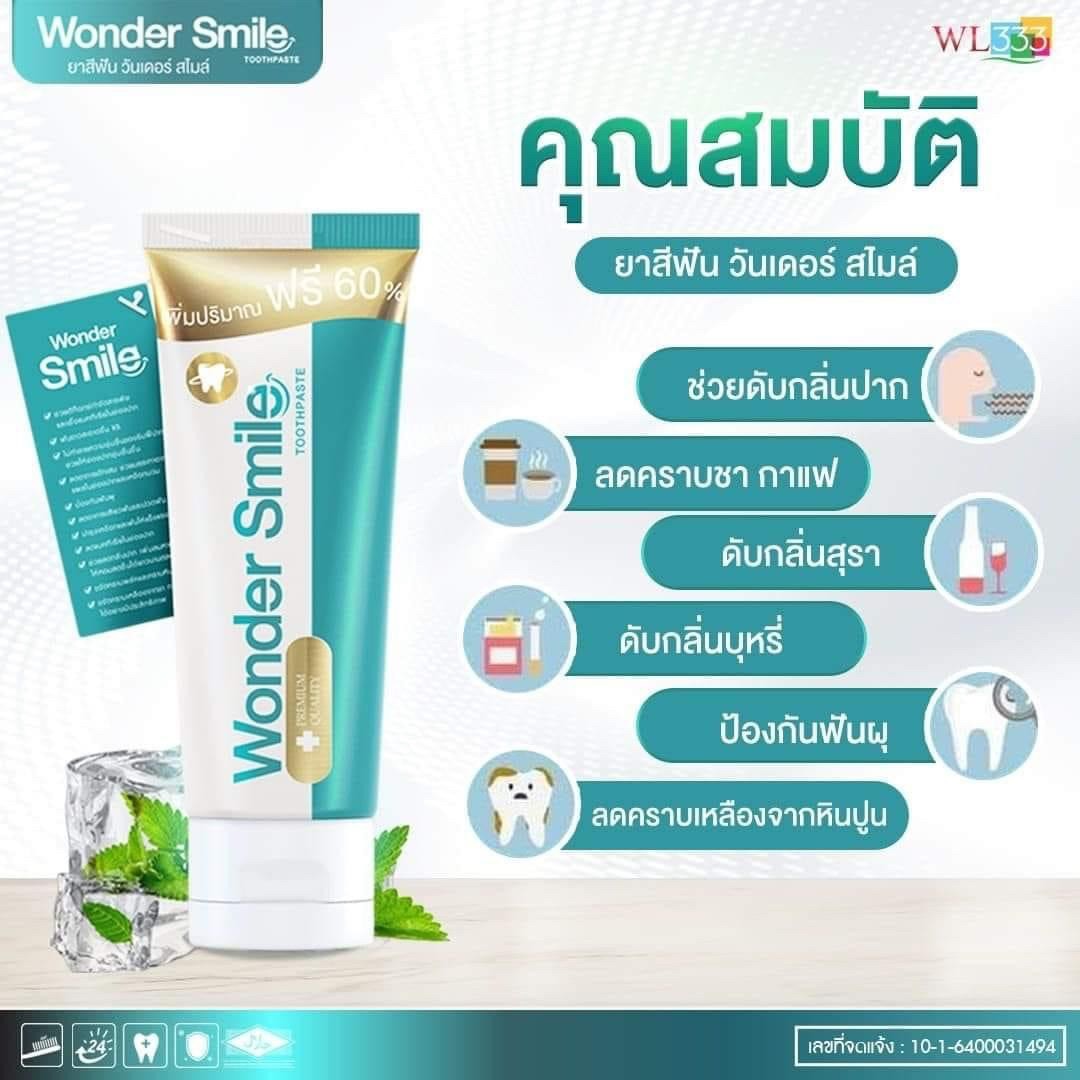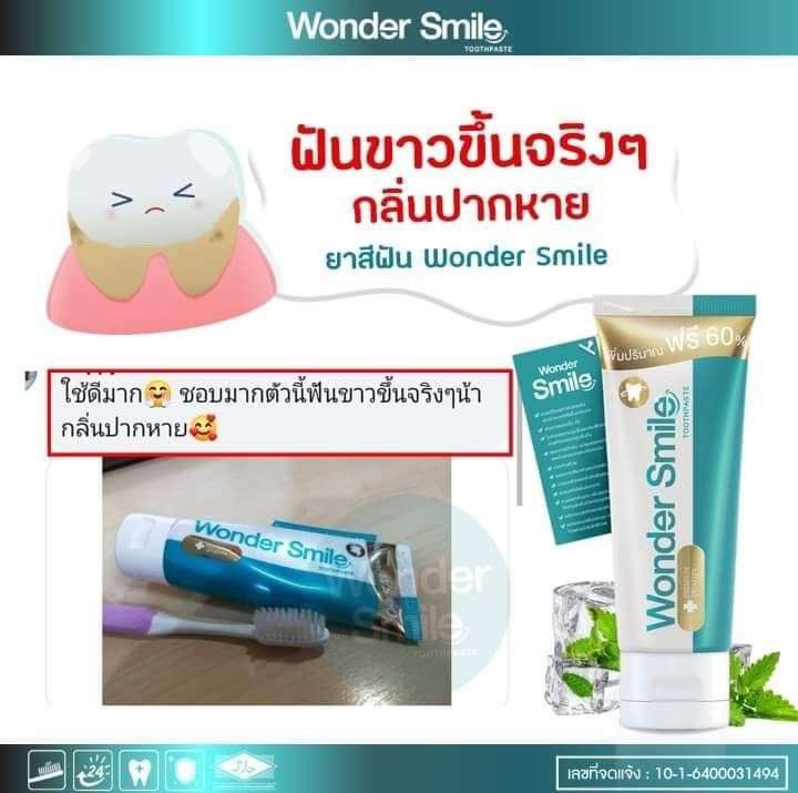 ยาสีฟัน วันเดอร์สไมล์ Wonder Smile ✅ ลดคราบหินปูน ฟันขาวขึ้น ✅ ลดกลิ่นปาก ดับกลิ่นปาก ✅ ป้องกันฟันผุ ฟันแข็งแรง ✅ ลดการอักเสบของเหงือก ✅ ไม่ทำลายสารเคลือบฟัน |