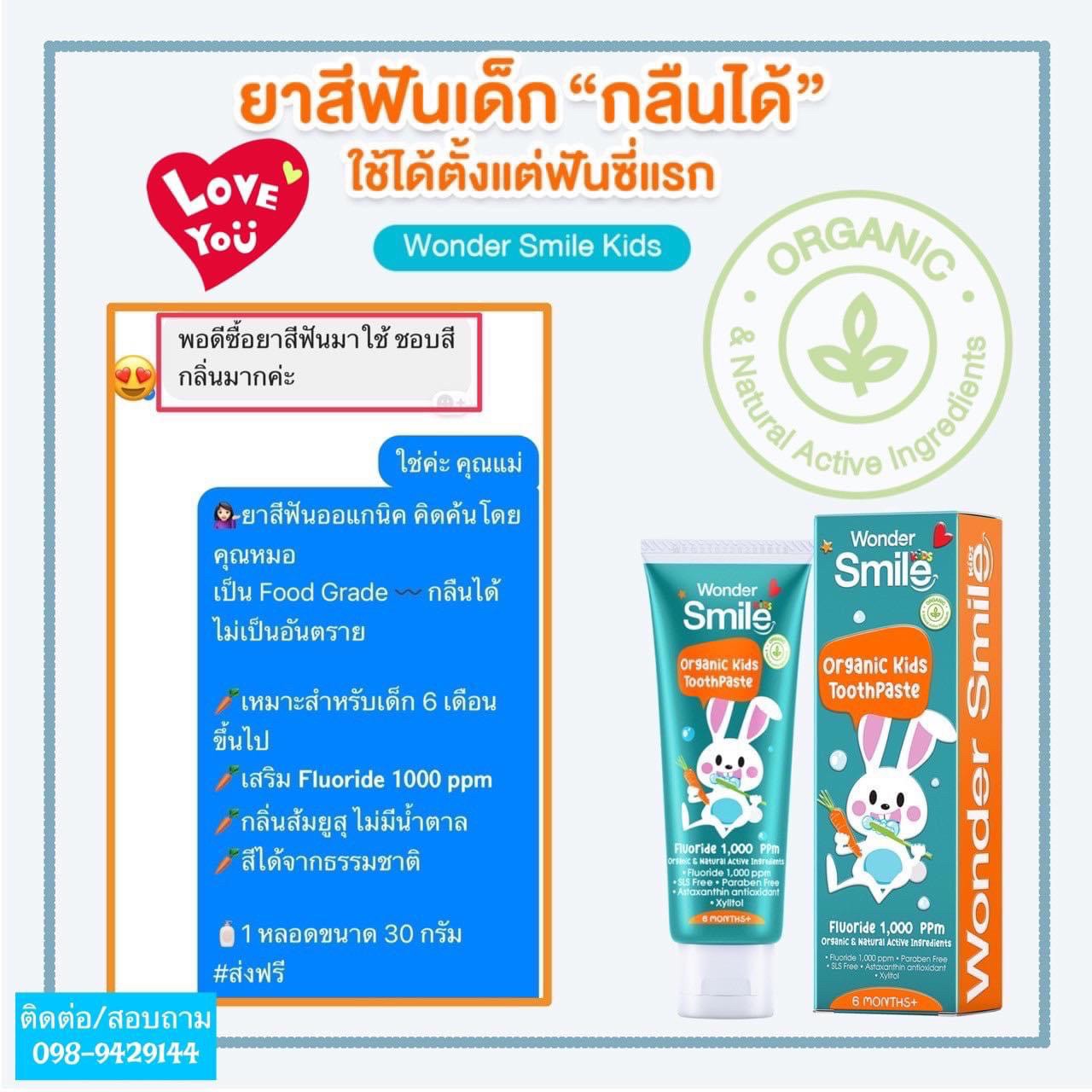 ยาสีฟันเด็ก วันเดอร์สไมล์ สูตรออร์แกนิค Wonder Smile Organic Kid ToothPaste ฟันดี ปลอดภัย พ่อแม่วางใจ ลูกใช้แล้วชอบ 1 หลอด ปริมาณ 30 กรัม |