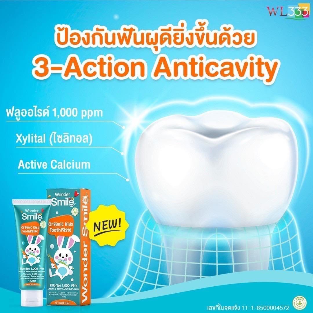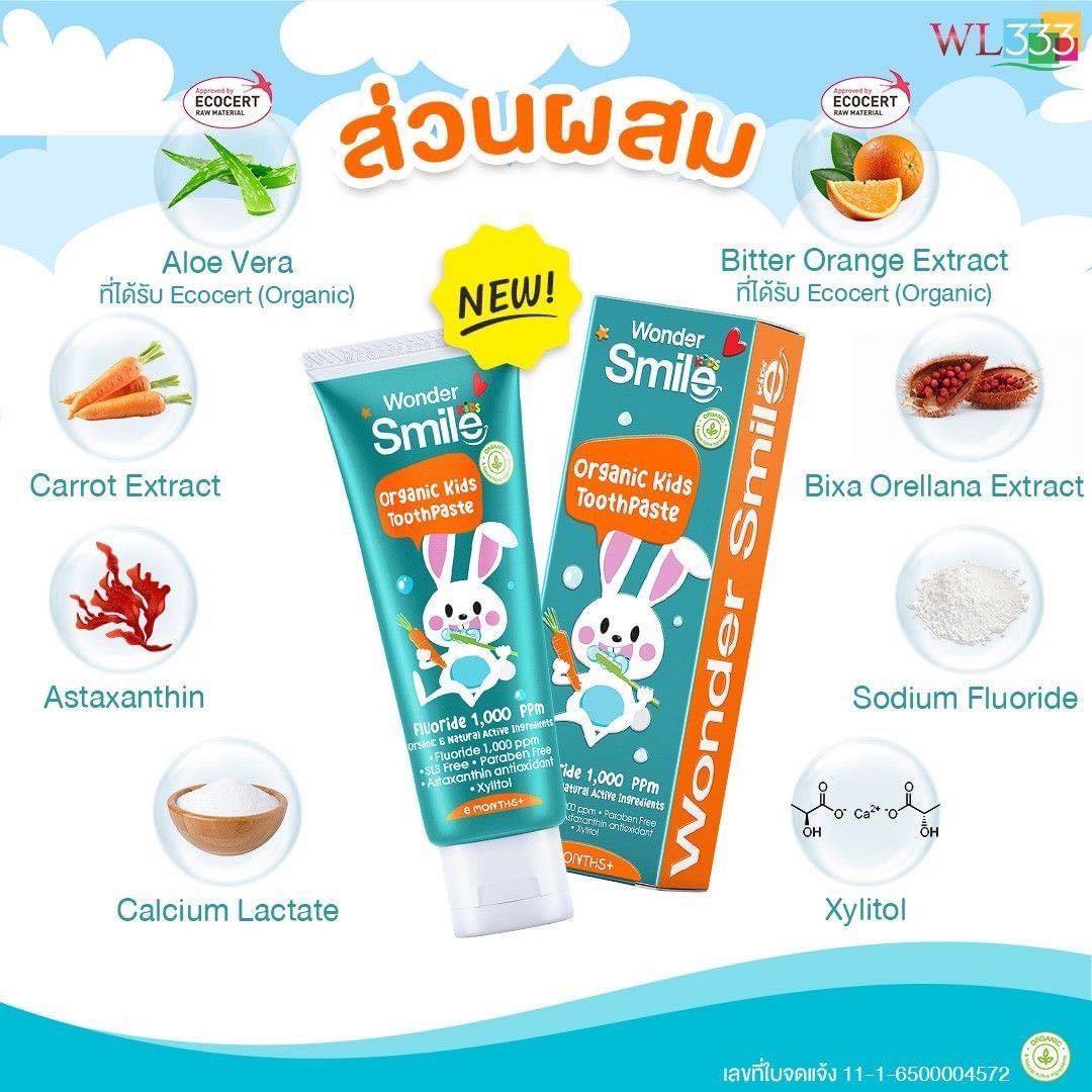 ที่สุดของยาสีฟันป้องกันฟันผุ วันเดอร์สไมล์ สูตรออร์แกนิค Wonder Smile Organic Kid ToothPaste |