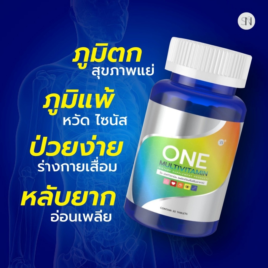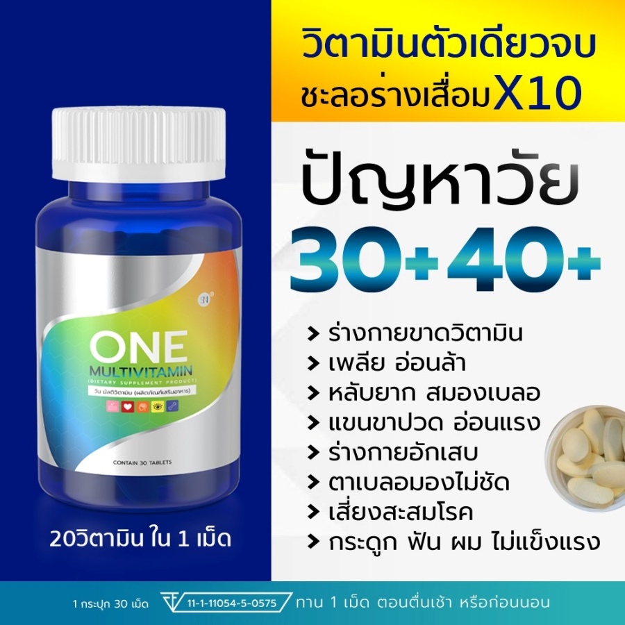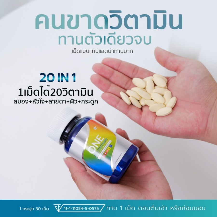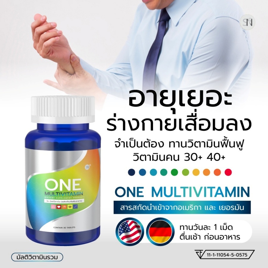 ONE MULTIVITAMN มัลติวิตามินรวม SN9 สารสกัดนำเข้าจากอเมริกาและเยอรมัน ✅ ช่วยลดอาการอ่อนเพลีย อักเสบของร่างกาย ✅ ช่วยบำรุงสมอง บำรุงปลายประสาท ✅ ช่วยบำรุงสายตา ✅ ช่วยบำรุงกระดูก ฟัน เส้นผม ✅ ช่วยฟื้นฟูผิวพรรณ ✅ ช่วยลดการสึกหรอเสื่อมของร่างกาย ✅ ช่วยลดการสะสมตัวของคอเลสเตอรอล ✅ ช่วยป้องกันโรคหัวใจ ✅ ลดกระดูกพรุน ✅ ช่วยในการแข็งตัวของเลือด |