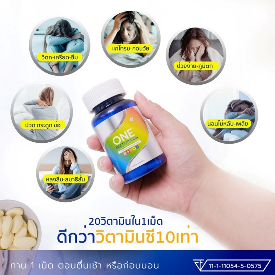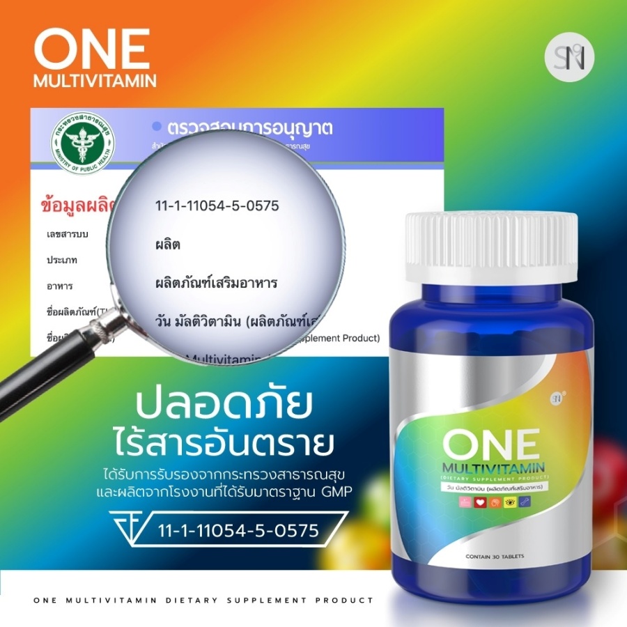 เลข อย. 11-1-11054-5-0575 วัน มัลติวิตามิน (ผลิตภัณฑ์เสริมอาหาร) One Multivitamin (Dietary Supplement Product) |