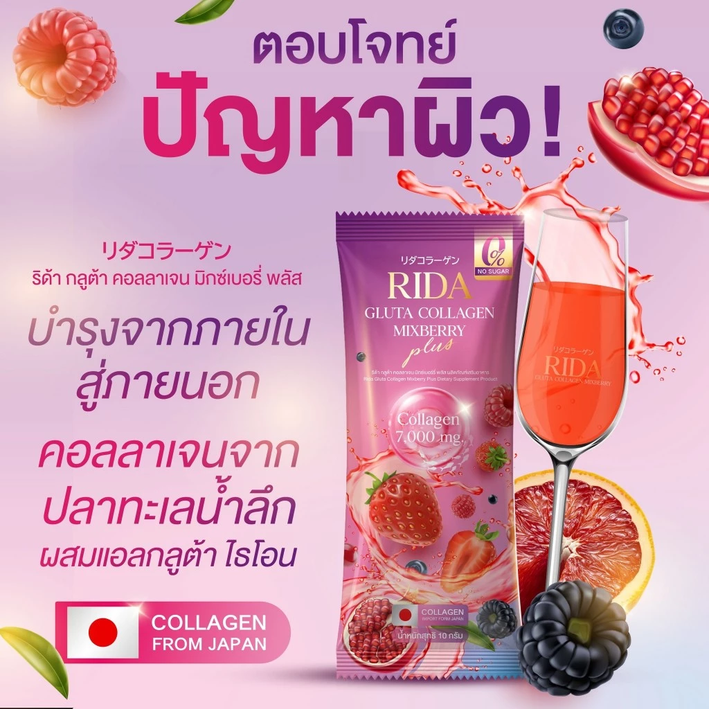 | ริด้ากลูต้าคอลลาเจน มิกซ์เบอร์รี่เหมาะกับใคร?Rida Gluta Collagen Mix Berry เป็นตัวเลือกที่เหมาะสำหรับ: 👉 ผู้ที่ต้องการดูแลผิวพรรณเป็นพิเศษ 👉 ผู้ที่มีไลฟ์สไตล์เร่งรีบ พักผ่อนไม่เพียงพอ และต้องการตัวช่วยดูแลผิว 👉 ผู้ที่ต้องเผชิญกับแสงแดดและมลภาวะเป็นประจำ 👉 ผู้ที่ต้องการดูแลตัวเองให้ดูดีอยู่เสมอ |