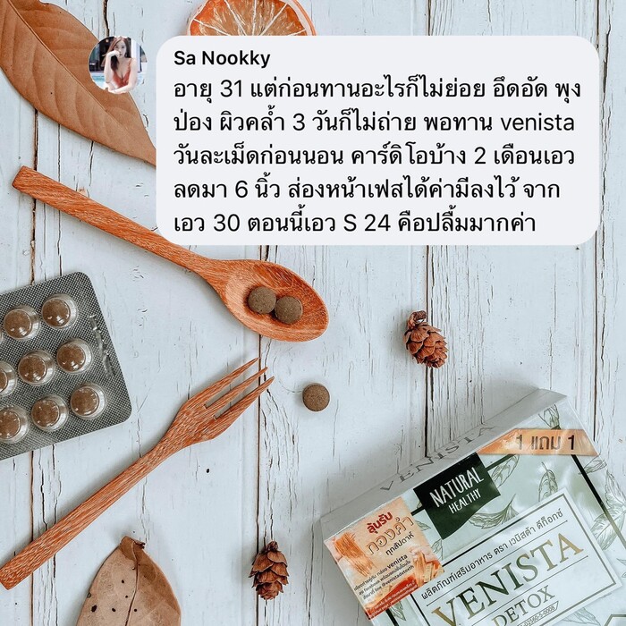 ขับถ่ายไม่เป็นเวลา ทาน Venista Detox ลำไส้ดี มีชัยไปกว่าครึ่ง 1. ทำให้ระบบย่อยอาหารดี ขับถ่ายง่ายขึ้น 2. ร่างกายดูดซึมสารอาหาร วิตามินต่างๆ ดีขึ้น 3. ระบบหมุนเวียนเลือดดี รู้สึกกระปรี้กระเปร่า 4. ไม่มีของเสียสะสมในร่างกาย ไม่มีกลิ่นปาก กลิ่นตัว 5. สุขภาพร่างกายแข็งแรง สดชื่น ไม่ซึม ผิวพรรณสดใสขึ้น  |