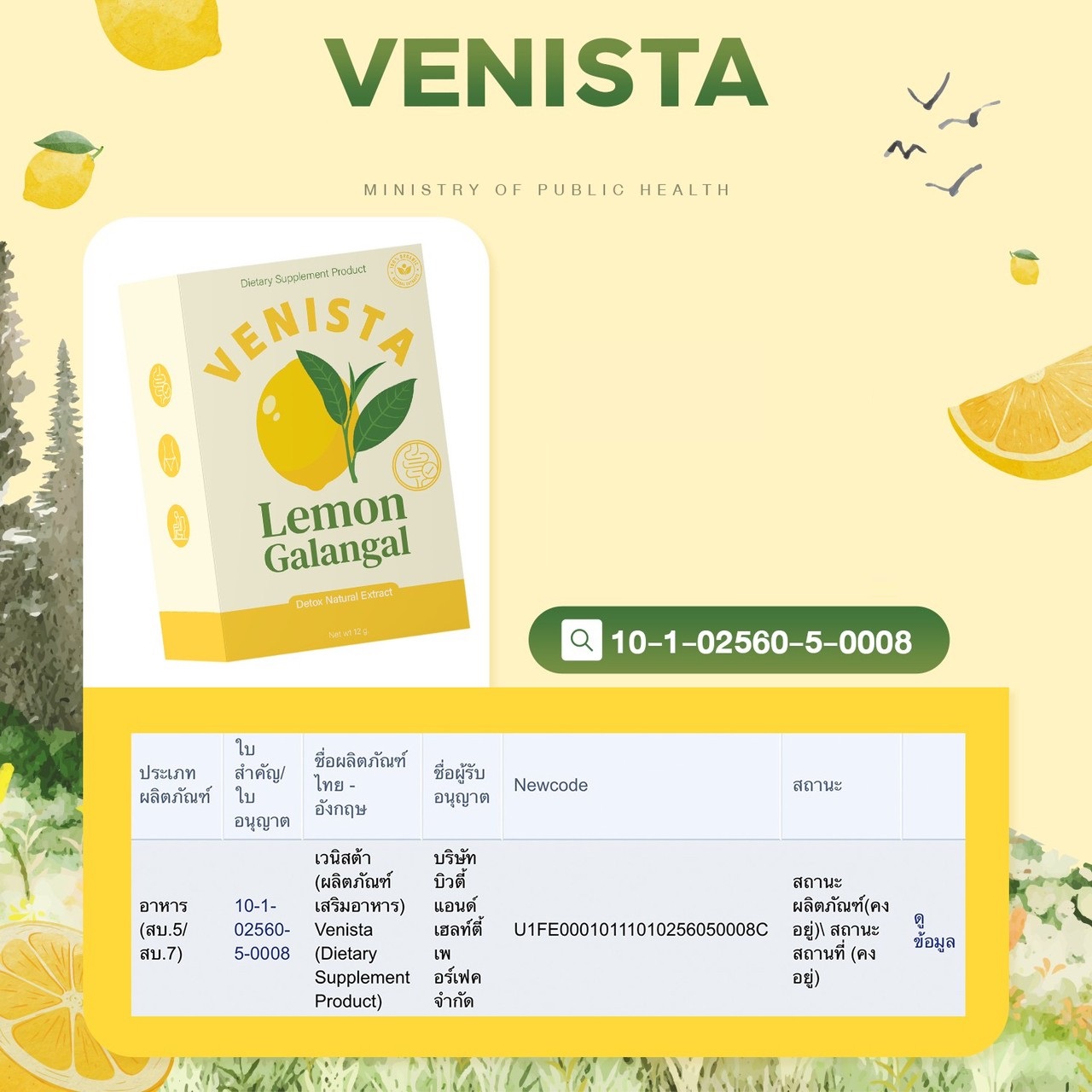 เลข อย. : 10-1-02560-5-0008 เวนิสต้า (ผลิตภัณฑ์เสริมอาหาร) Venista (Dietary Supplement Product)  |
