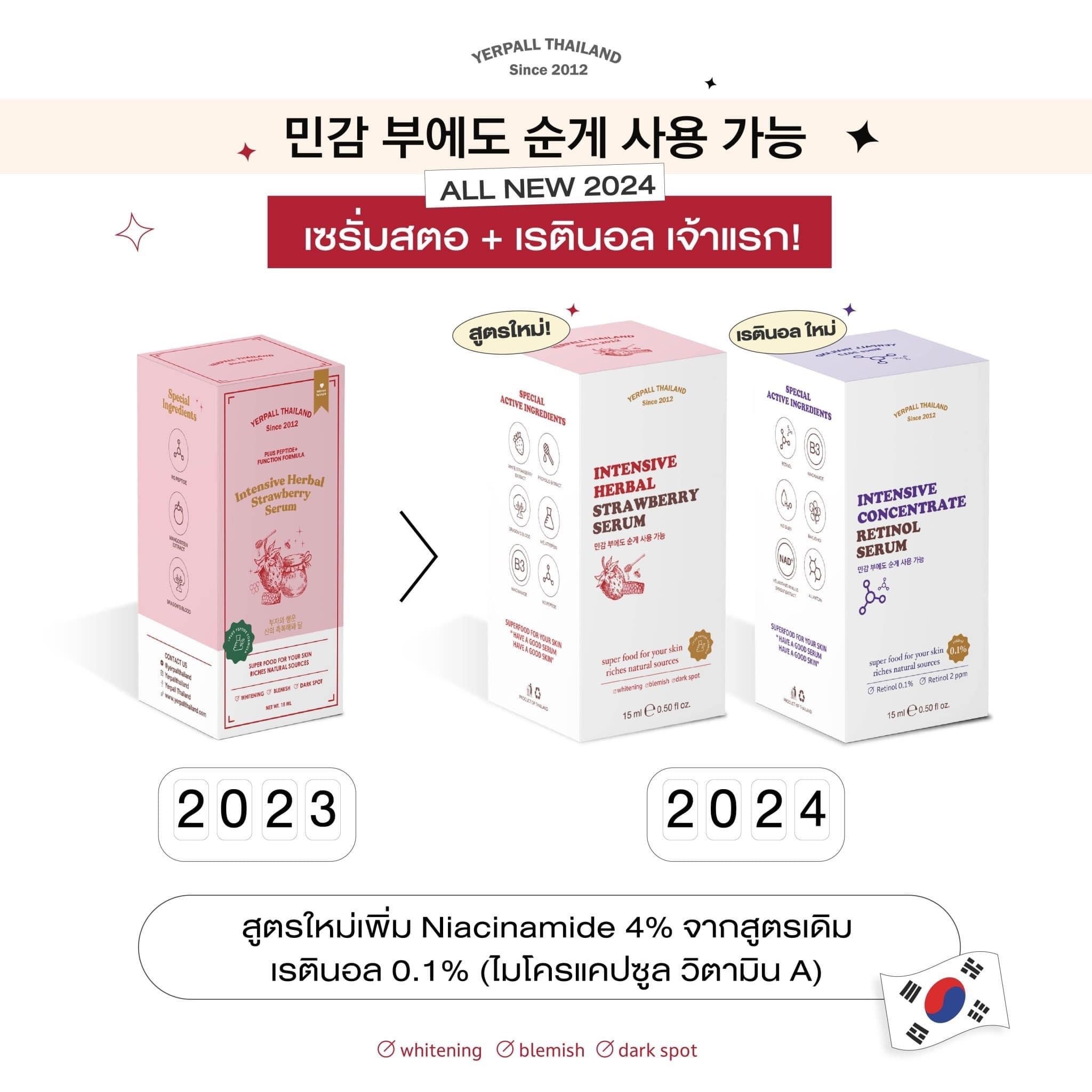 🍓 เซรั่มสตอ สูตรใหม่ ปี 2024 เยอร์พอล อินเท็นซีฟ เฮอร์เบิล สตรอเบอรี่ เซรั่ม YERPALL INTENSIVE HERBAL STRAWBERRY SERUM ลดรอยสิว ฝ้า กระ มีสารนวัตกรรมใหม่ MeleTrepein ป้องกันและลดการเกิดเมลานิน รูขุมขนเล็กลง ผิวกระจ่างขึ้น Niacinamide ที่มีความเข้มข้น 4-5% จะช่วยกระตุ้นการสร้างคอลลาเจน ลดเลือนริ้วรอย ผิวกระชับขึ้น 1 ขวด ปริมาณ 15 มิลลิลิตร |
