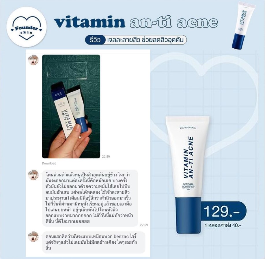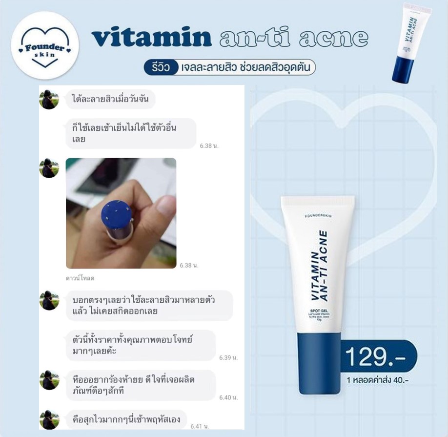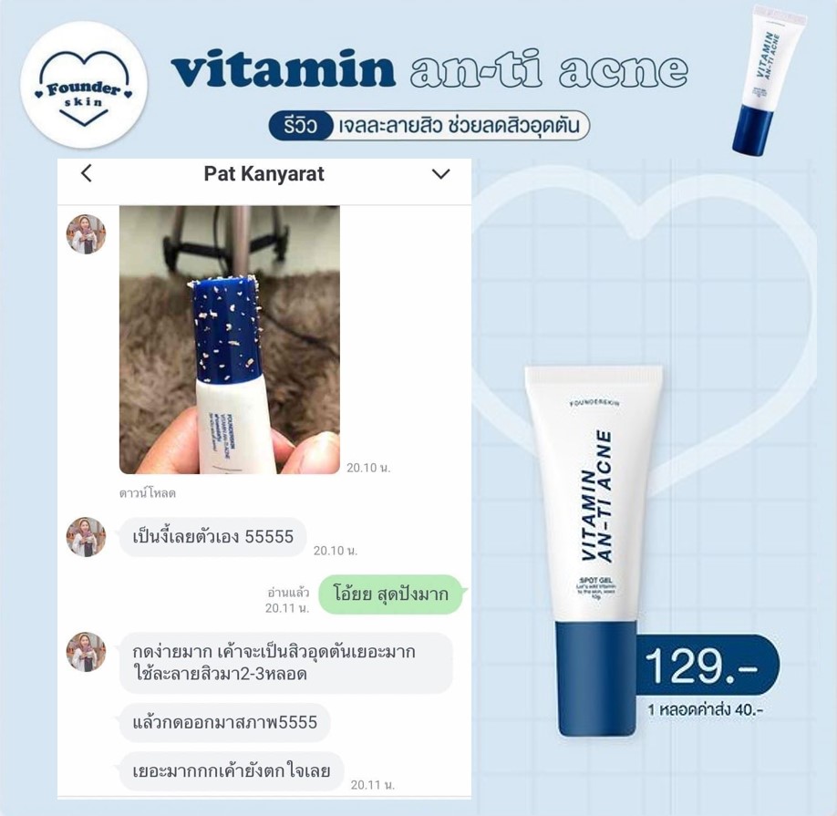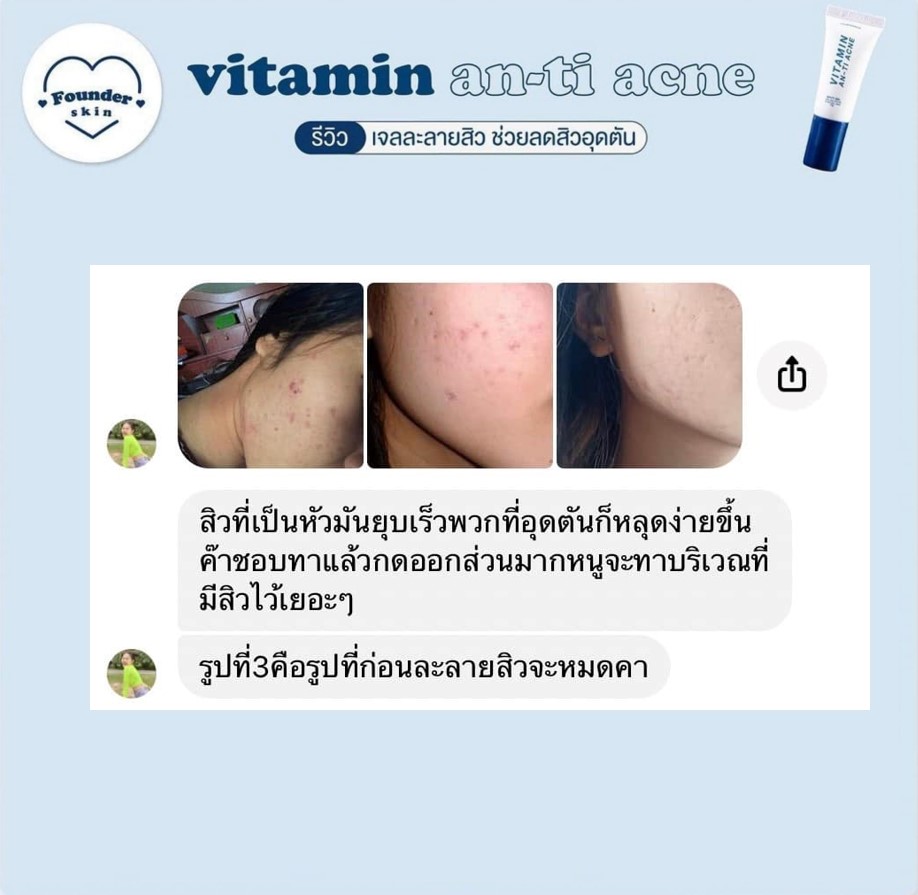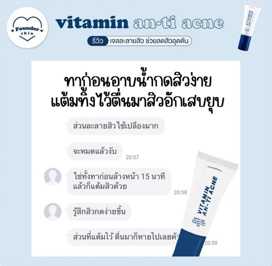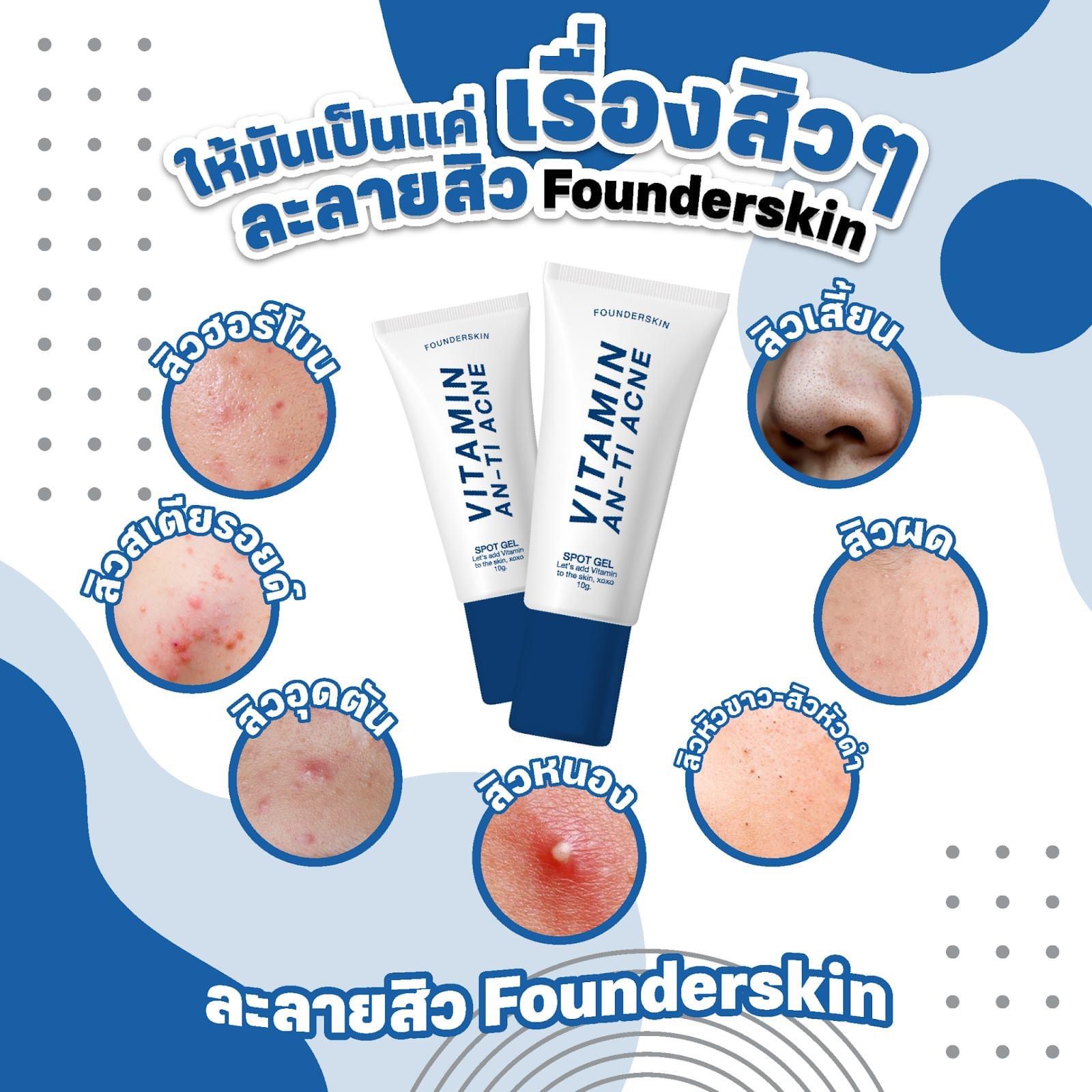 สิวฮอร์โมน สิวสเตียรอยด์ สิวอุดตัน สิวหนอง สิวหัวขาว สิวหัวคล้ำ สิวผด สิวเสี้ยน ให้มันเป็นแค่เรื่องสิวๆ ด้วยเจลละลายสิวฟาวเดอร์ Founderskin Vitamin An-ti Acne  |