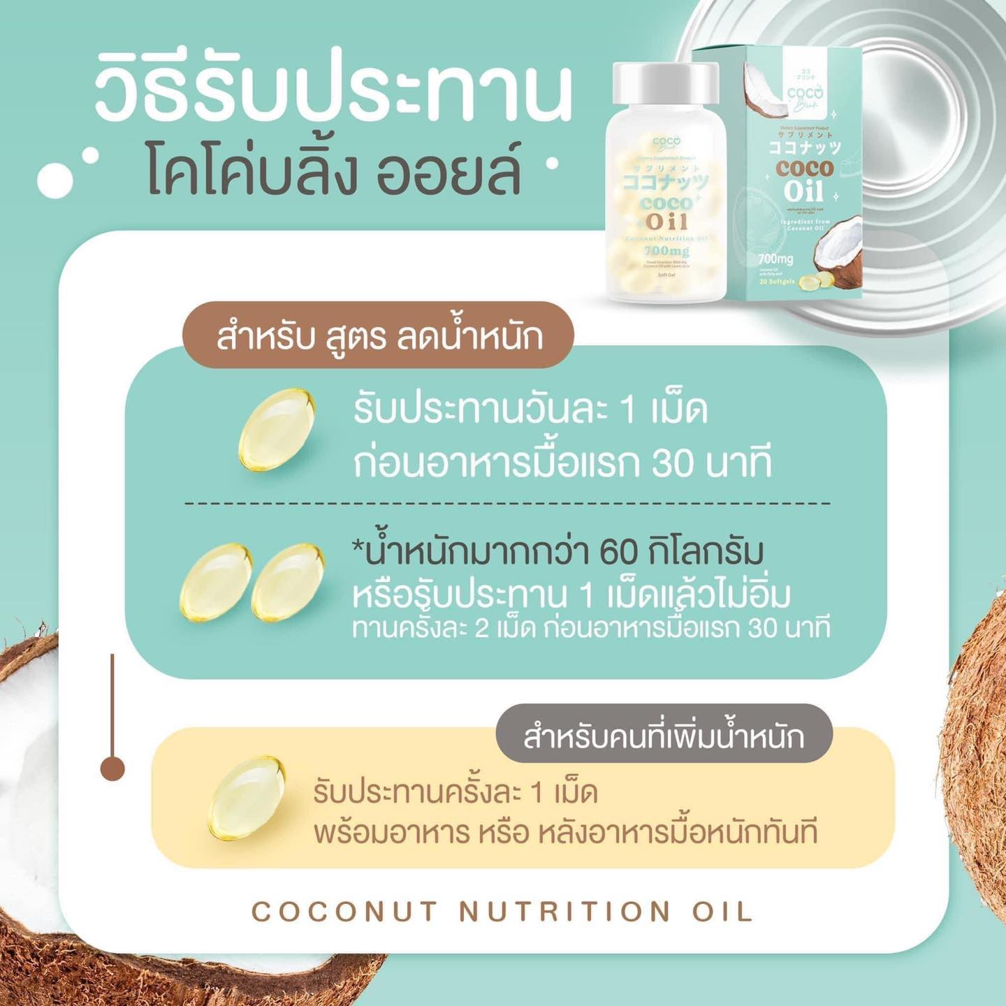 วิธีรับประทาน โคโค่บลิ้ง ออยล์ COCO OIL กินยังไง กินตอนไหน ให้ได้ผลลัพธ์ที่ดี สำหรับ สูตรลดน้ำหนัก รับประทานวันละ 1 เม็ด ก่อนอาหารมื้อแรก 30 นาที *น้ำหนักมากกว่า 60 กิโลกรัม รับประทาน 1 เม็ดแล้วไม่อิ่ม ทานครังละ 2 เม็ด ก่อนอาหารมื้อแรก 30 นาที สำหรับคนที่เพิ่มน้ำหนัก รับประทานครั้งละ 1 เม็ด พร้อมอาหาร หรือ หลังอาหารมื้อหนักทันที |