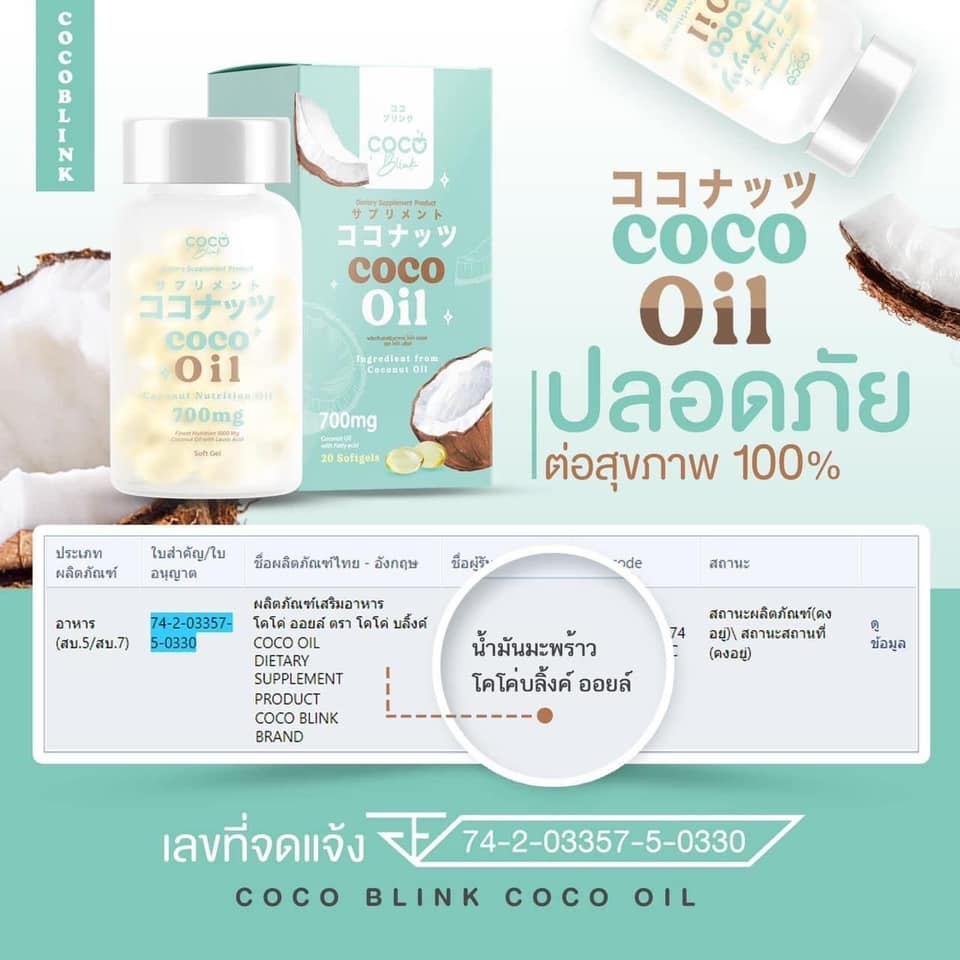 เลขที่จดแจ้ง 74-2-03357-5-0330 ผลิตภัณฑ์เสริมอาหาร โคโค่ ออยล์ ตรา โคโค่ บลิ้งค์ COCO OIL DIETARY SUPPLEMENT PRODUCT COCO BLINK BRAND |